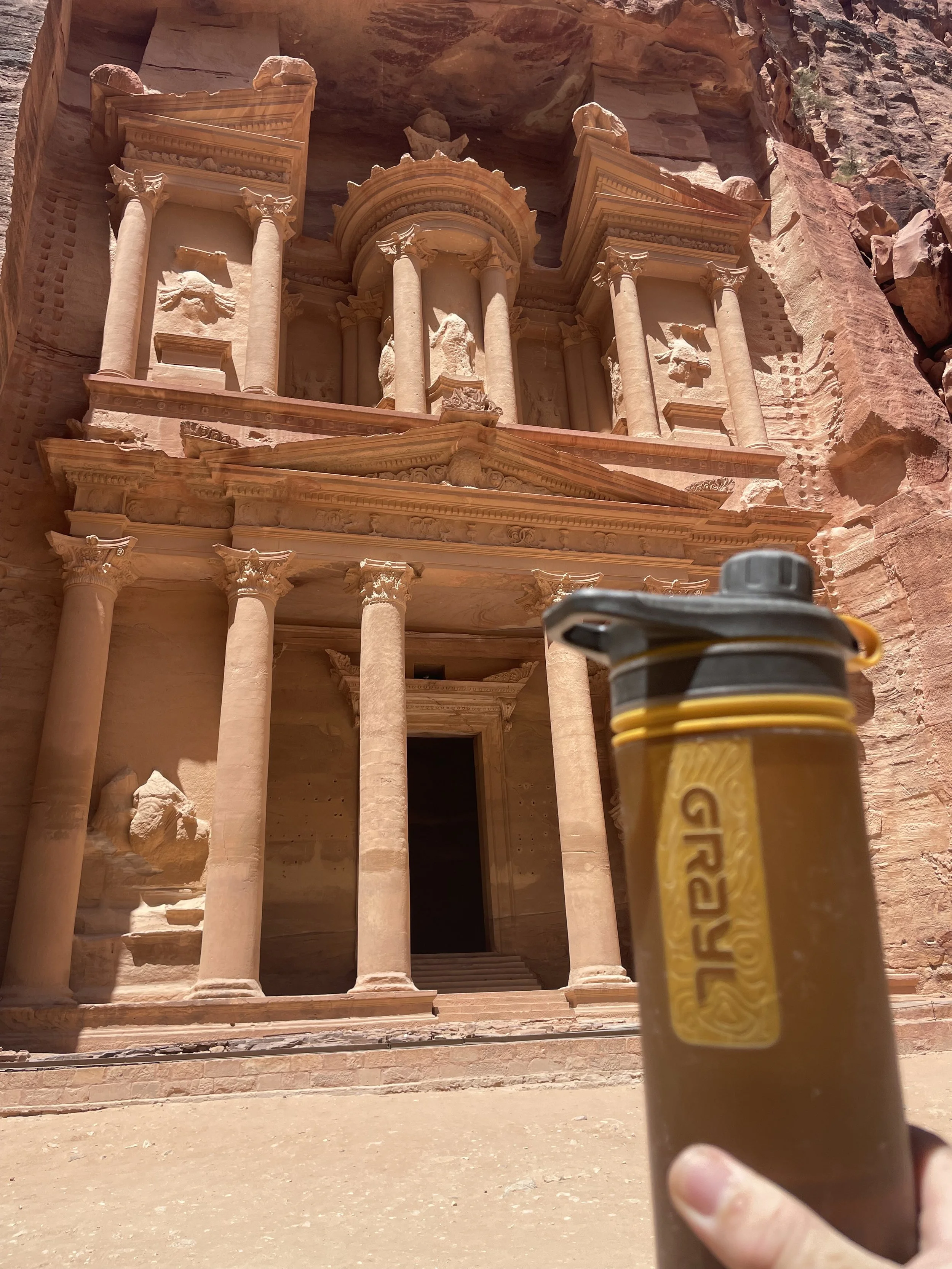 In 2024, I traveled to Amman, Jordan, and couldn't resist driving to historic Petra to live out my childhood *Indiana Jones* dreams. Sitting before the awe-inspiring Treasury, I pulled out my Grayl Geopress, took a refreshing sip, and had a realization—"The Grayl *does* exist!" As I soaked in the wonder of the ancient world, I knew this was a moment I’d never forget.